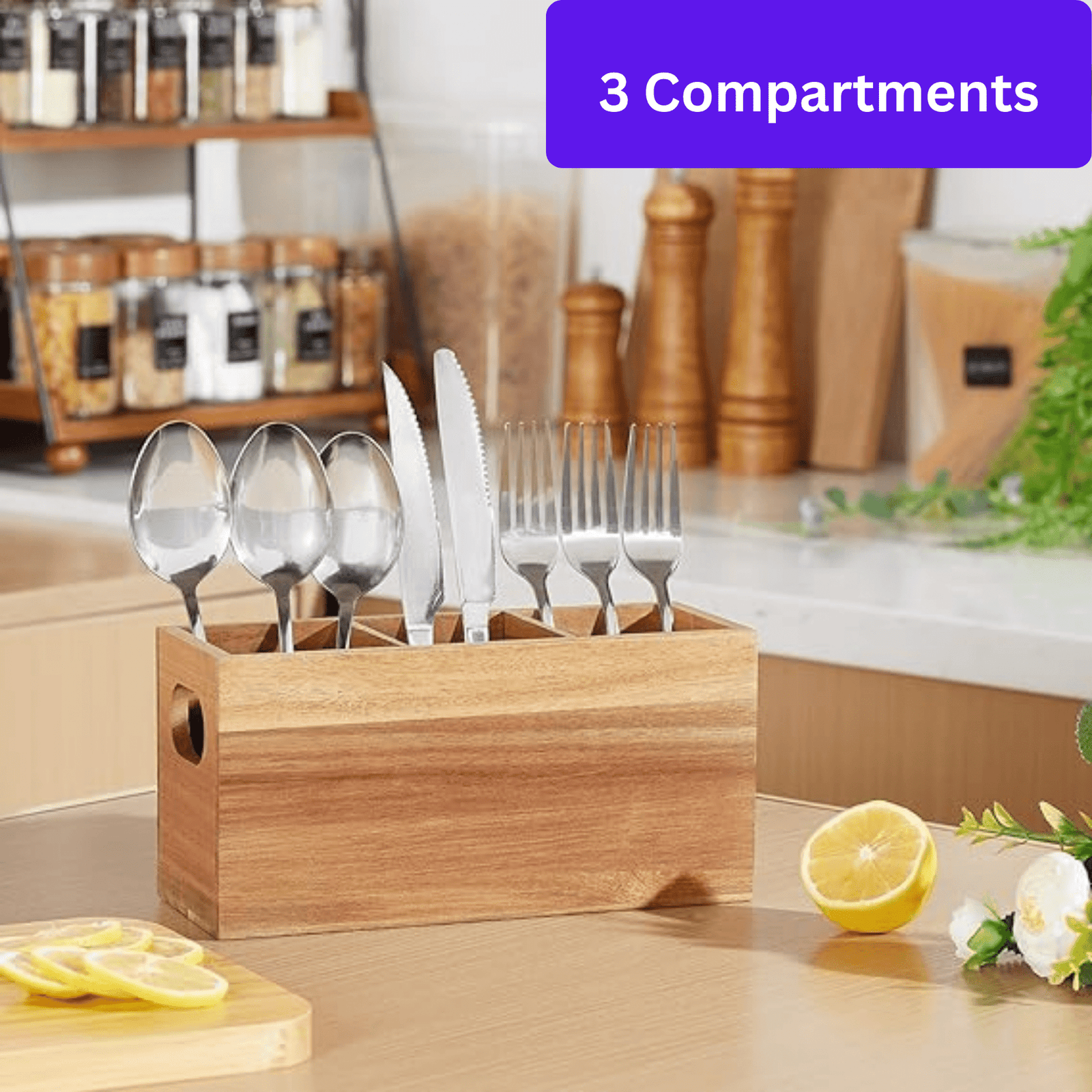 Designed with practical dividers, this utensil holder keeps your spoons, spatulas, and tools organized while adding a modern touch to your countertop.