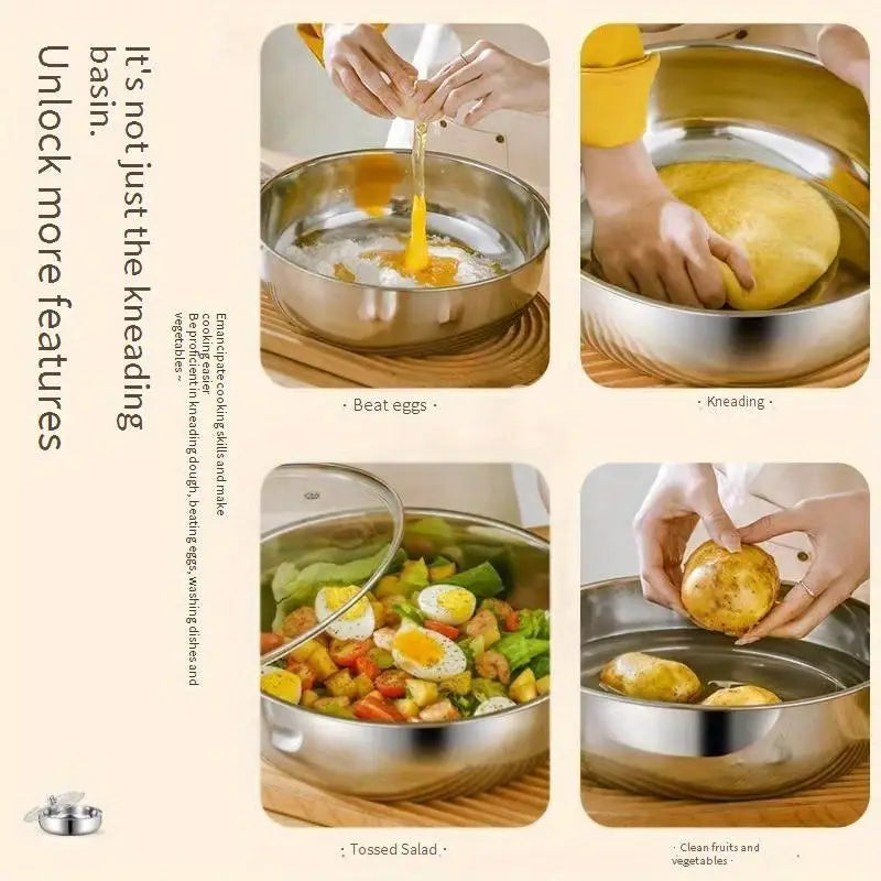 12.2" Stainless Steel Kneading Basin, Heavy-Duty Round Mixing & Washing Bowl