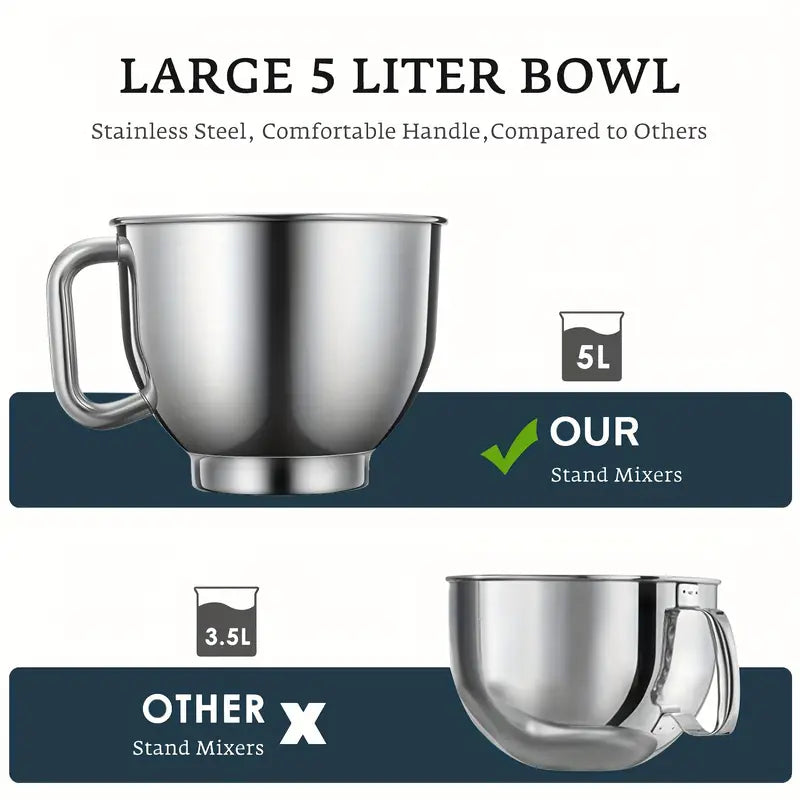 5.5QT Stand Mixer with Double Hook, 6-Speed Stainless Steel Bowl Mixer
