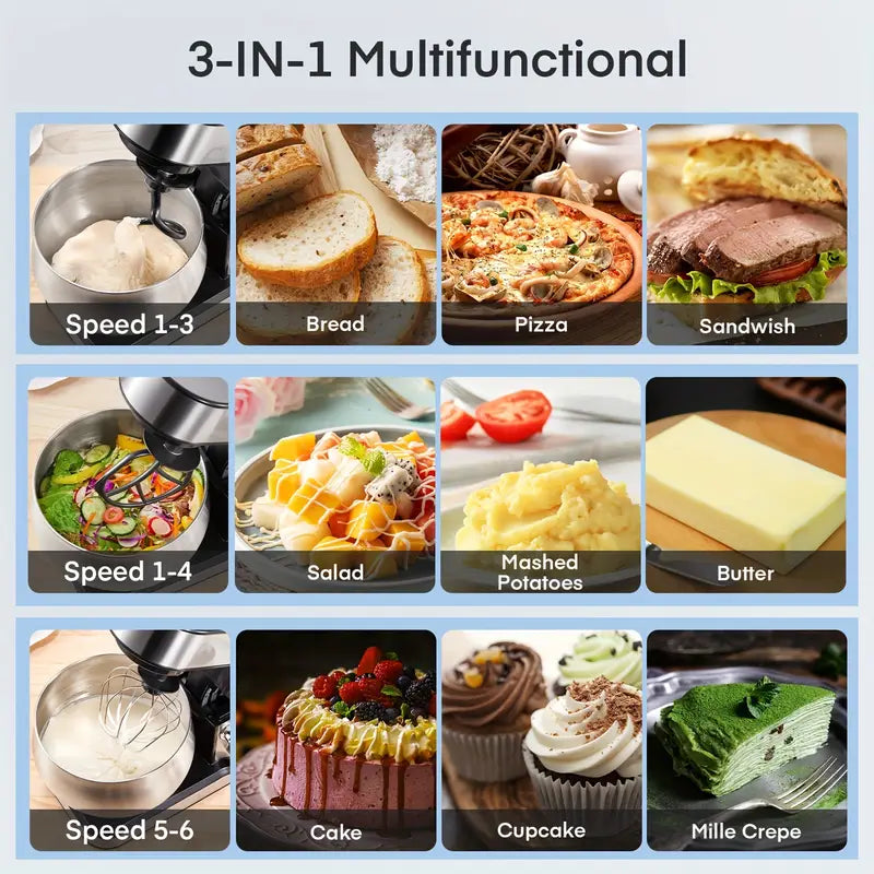 Stainless Steel Kitchen Mixer with Dough Hook, 6-Speed Tilt-Head Stand Mixer